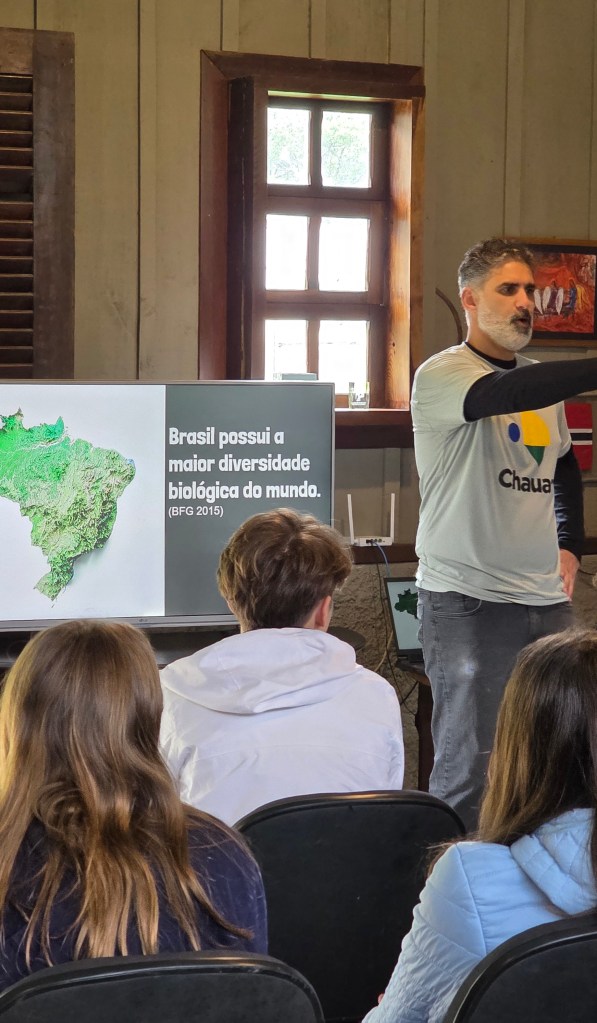 No fim do mês, seguimos com as experiências educativas em parceria com o Mater Natura e a Sociedade Chauá. Visitamos o viveiro da Chauá, referência em espécies nativas raras e ameaçadas, onde as turmas do 7º ano da Deutsche Schule participaram de palestras e de um plantio orientado pelo eng. ambiental Deco Sampaio, um dos fundadores da instituição.